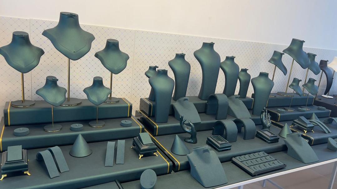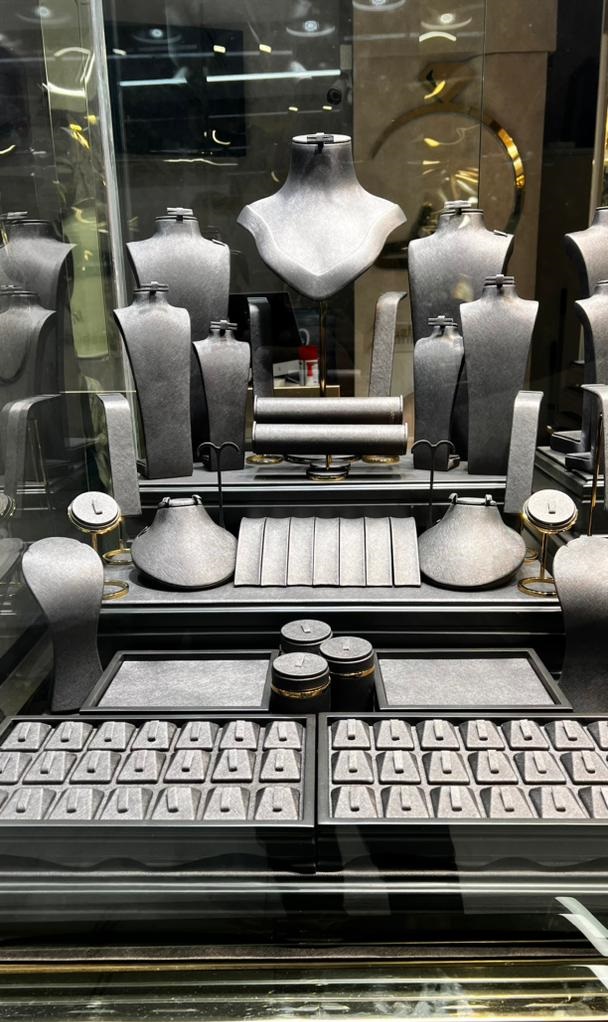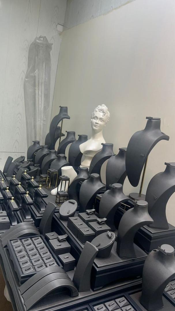 Moghaddam Gold and Jewelry Decoration Design Group is proud to have over 11 years of experience in designing and producing various gold, jewelry, and costume jewelry mannequins and boxes in different sizes, as well as interior decoration and jewelry showcases. With a team of experienced professionals, we offer the latest global models. Since our valued customers may not be familiar with the design and production process of gold and jewelry decor, the Moghaddam Design and Production Group provides them the opportunity to observe all production stages and place their orders. We use the finest materials, including high-durability Turkish fabrics, leather and adhesive brands, plastic frames, and polyester. To accommodate customers in other cities, we dispatch experienced staff for on-site consultations and design upon customer request.